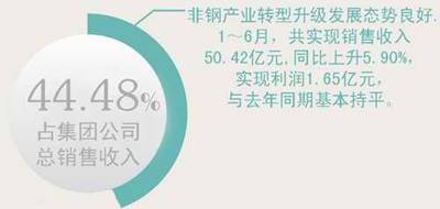 數(shù)據(jù)顯示,非鋼產(chǎn)業(yè)上半年實(shí)現(xiàn)銷售收入50.42億元,占集團(tuán)公司匯總銷售收入的44.43%、同比上升5.90%,實(shí)現(xiàn)利潤1.65億元,與去年同期持平。在10家盈利的非鋼子公司中,朵力房產(chǎn)司、礦業(yè)公司等優(yōu)勢非鋼企業(yè)持續(xù)保持強(qiáng)勁增長勢頭,上半年分別實(shí)現(xiàn)利潤8574萬元、4364萬元,同比增長20.46%、14.33%。