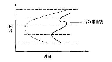 過冷奧氏體向珠光體或貝氏體的轉(zhuǎn)變屬擴(kuò)散型相變。合金元素溶入奧氏體后,能降低原子擴(kuò)散速度,使奧氏體穩(wěn)定性增加,使C曲線右移,且改變C曲線形狀,如圖1所示。