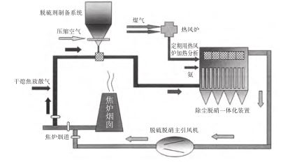 圖 1 焦?fàn)t煙氣脫硫脫硝裝置流程
