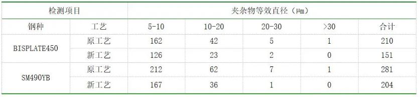 表1 新工藝應(yīng)用前后---鑄坯中夾雜物檢測(cè)結(jié)果對(duì)比