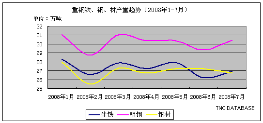 重鋼集團(tuán)鐵、鋼、材產(chǎn)量統(tǒng)計(jì)(2008.7)