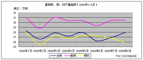 重鋼集團(tuán)鐵、鋼、材產(chǎn)量統(tǒng)計(jì)(2008.8)