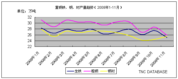重鋼集團(tuán)鐵、鋼、材產(chǎn)量統(tǒng)計(jì)(2008.11)