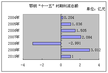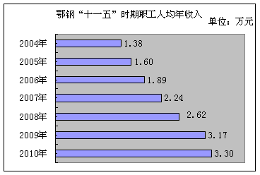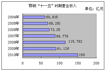 鄂鋼利潤總額、營業(yè)收入及職工年均收入(2005-2010)
